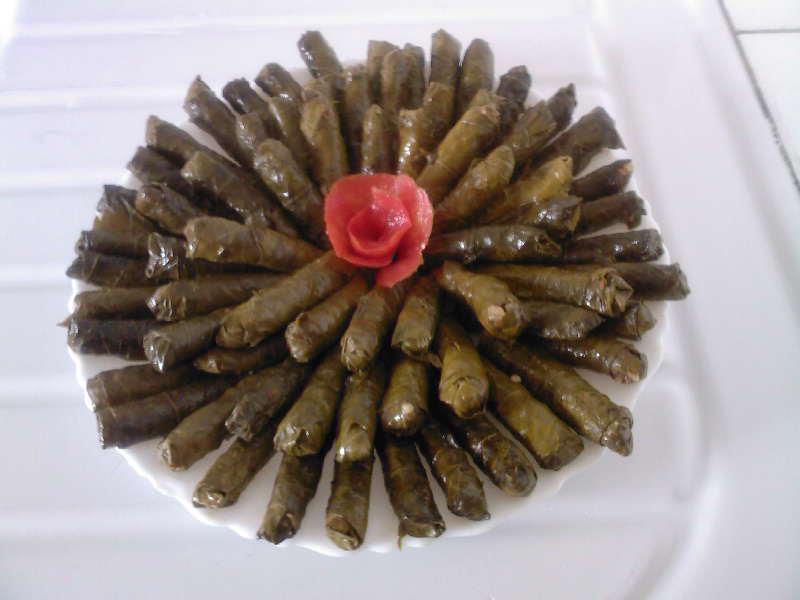 Druivenblad  gevuld met rijst, uien, peterselie en knoflook